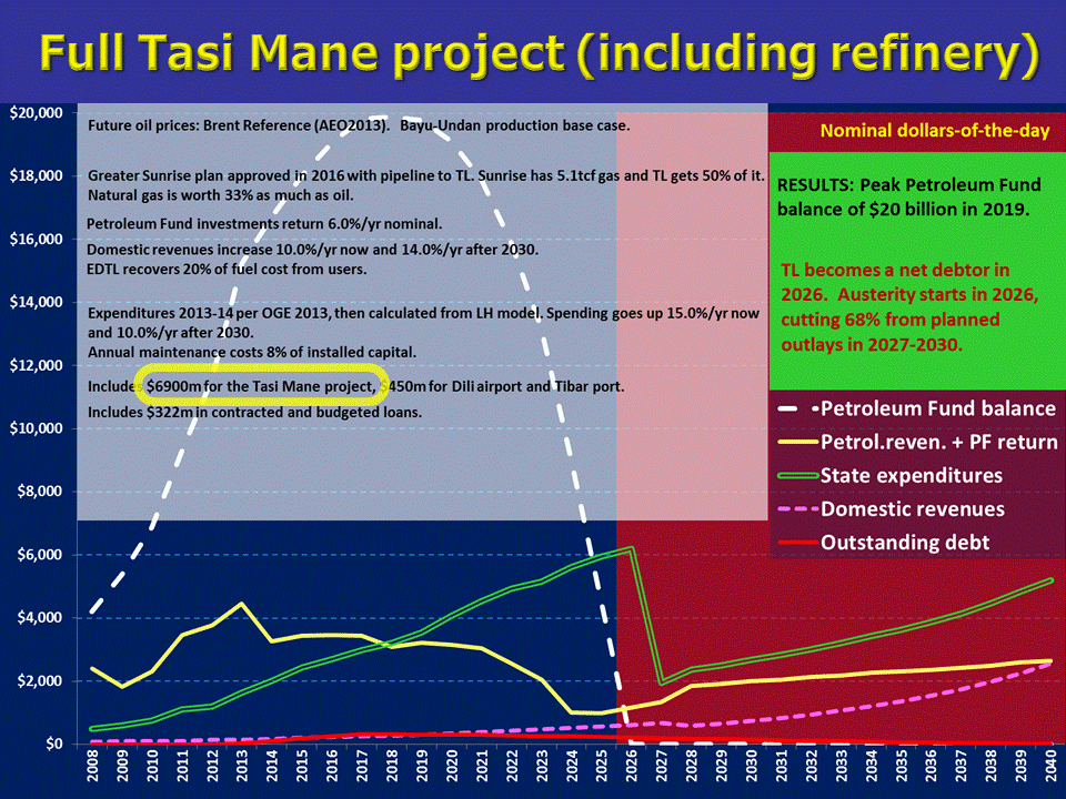 Ami duvida tebes katak Projetu Tasi Mane sei lori benefisiu ba povu maioria, tanba gastu publiku ba projetu ne’e barak liu duke atu hetan retornu. Ne’e sei fornese númeru servisu uitoan de’it, no ita fó subsídiu boot liu ba kompañia sira husi rai li’ur. Agrikultór sei lakon rai ba prodús ai-han no dependénsia ba importasaun sai boot liu, no mós pobreza sei sai maka’as liu bainhira osan mina hotu ona. Ami hein katak Parseiru Dezenvolvimentu, bele ajuda Governu no sosiedade sivíl, hatudu analiza realistiku ba kustu, benefísiu no viabilidade husi Projetu Tasi Mane antes kontratu obrigatóriu Timor-Leste atu selu atus tokon dolar balun ba konstrusaun, ne’ebé sei bele akontese iha fulan balu.