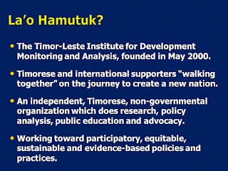 Seventeen years ago last week, La’o Hamutuk was formed in response to that request, as an independent, small, local civil society organization. We began to analyze and report on international organizations active in Timor-Leste. We encouraged them, and later Timor-Leste’s own government, to strengthen political sovereignty (including the maritime boundary with Australia), legal accountability (including ending impunity for crimes against humanity committed during the Indonesian occupation), environmental protection, and sustainable, equitable economic development.