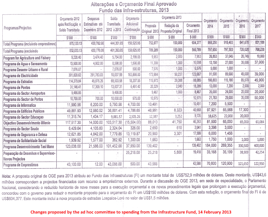 - $1.5m for the Los Palos - Lore Road (via the Infrastructure Fund)