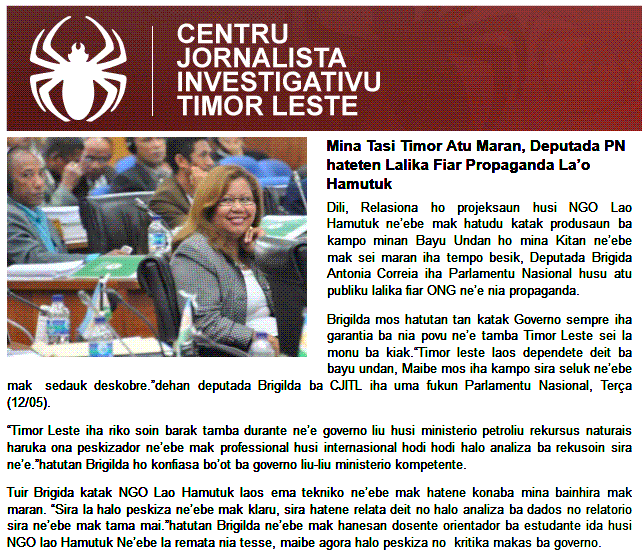 After these articles were published, some Members of Parliament did recognize that our oil will indeed run out eventually. However, others responded by saying that people should not believe La’o Hamutuk’s analysis. Deputada Brigida Correia said that “La’o Hamutuk NGO’s staff are not technical people who can know when the oil will run out. They don’t do clear research...”